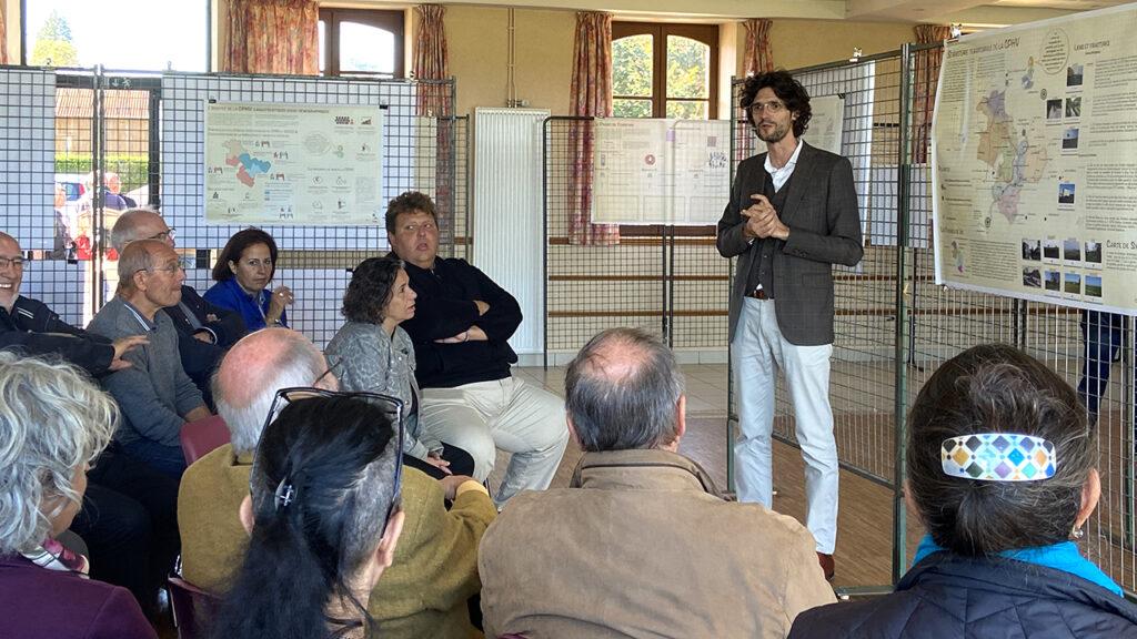 Mardi 7 octobre, devant plus de 70 personnes, l’équipe projet a rendu compte de cette collaboration au travers d’une présentation dynamique à l’appui d’une exposition, d’ateliers, de lectures, de diaporamas, et d’un débat autour de la mise en oeuvre et de la gouvernance du projet de territoire. Cette rencontre a favorisé des échanges nourris et constructifs entre les participants, élus communautaires, institutionnels (Préfecture, Conseil départemental, DDT, Territoires Vendômois notamment) et techniciens de la CPHV.