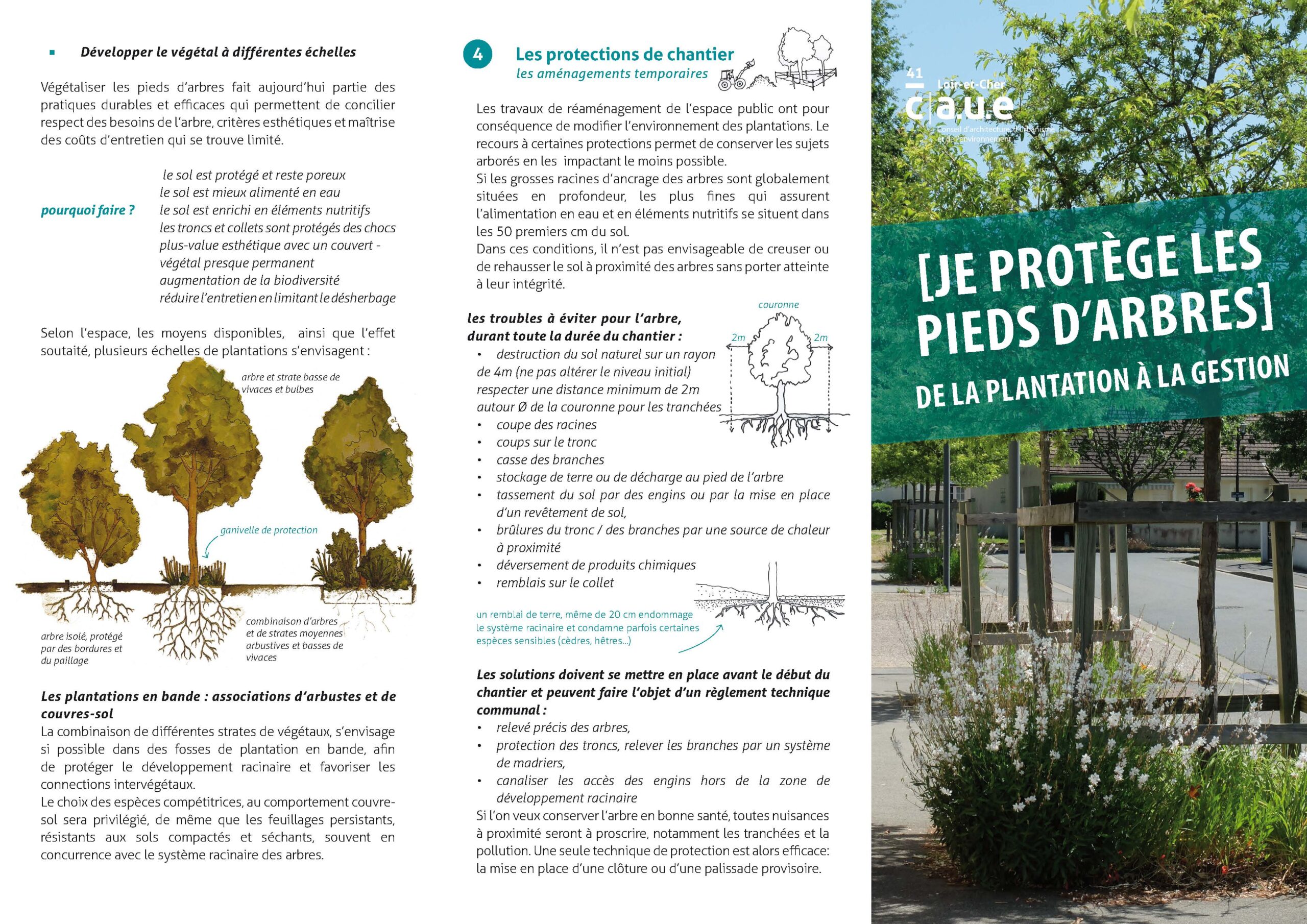 De la plantation à la gestion, la fiche pratique « Je protège les pieds d’arbres » résume de qu’il faut retenir pour apporter à l’arbre les meilleures conditions de vie et de développement : comprendre l’équilibre entre l’aérien et le souterrain, planter dans les règles de l’art et connaître les aménagement de protection des pieds d’arbre, qu’ils permanents ou provisoires (lors de chantiers par exemple).